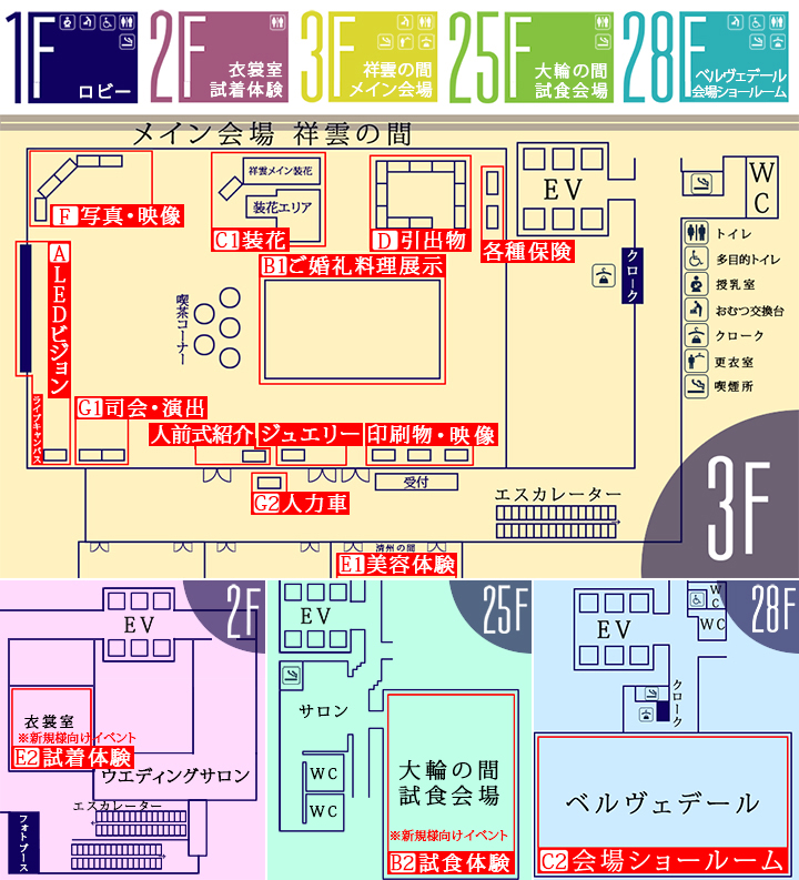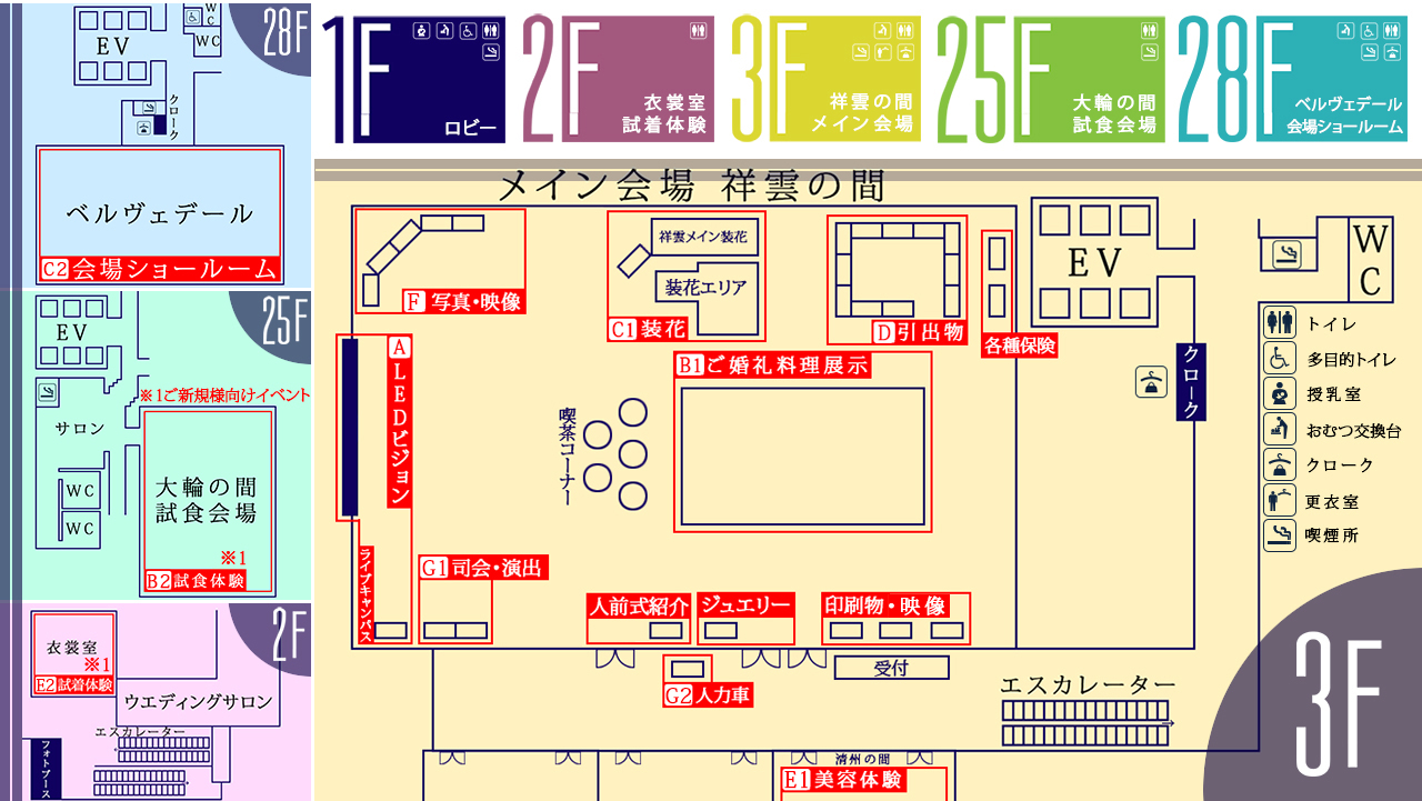 会場をご案内プランナーが各ブースをご説明しながらご案内いたします。初めての方も安心してお楽しみいただけます。